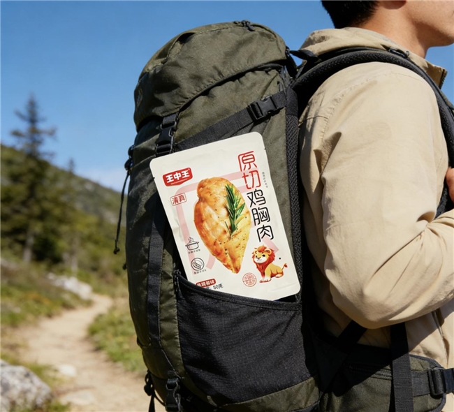 从背包侧袋抽出一包春都的王中王原切鸡胸肉,你会发现如今的春都,真的很懂当下注重健康的年轻人。这款产品由整块鸡胸肉原切而成,配料表干净简洁,具有低脂肪、高蛋白的特点,得益于独特的低温杀菌与保水工艺,肉质鲜嫩多汁,颠覆了印象中鸡胸肉干柴的口感。一口鸡胸肉,伴着山野清风,恰是户外人追求的“松弛感”。